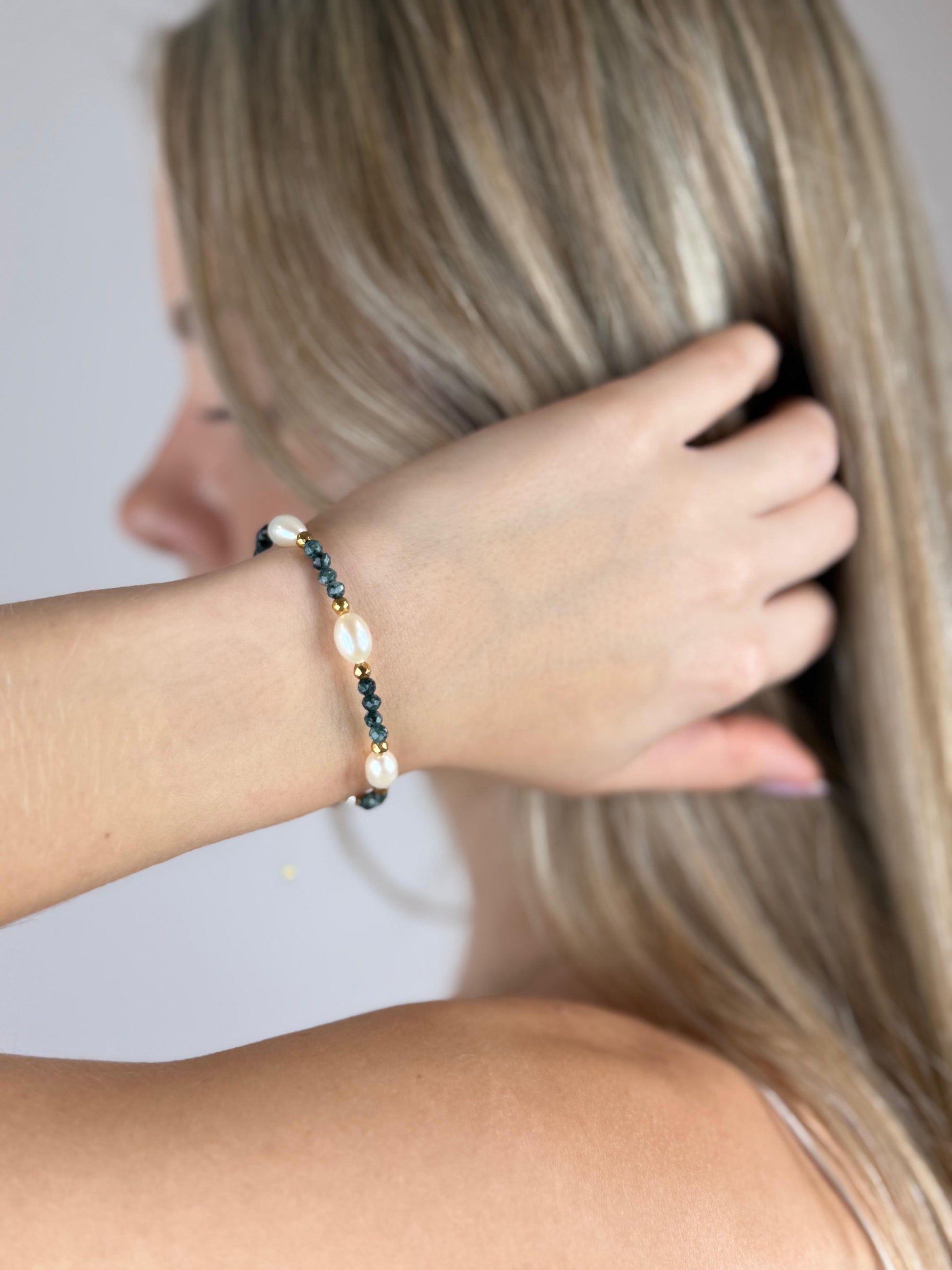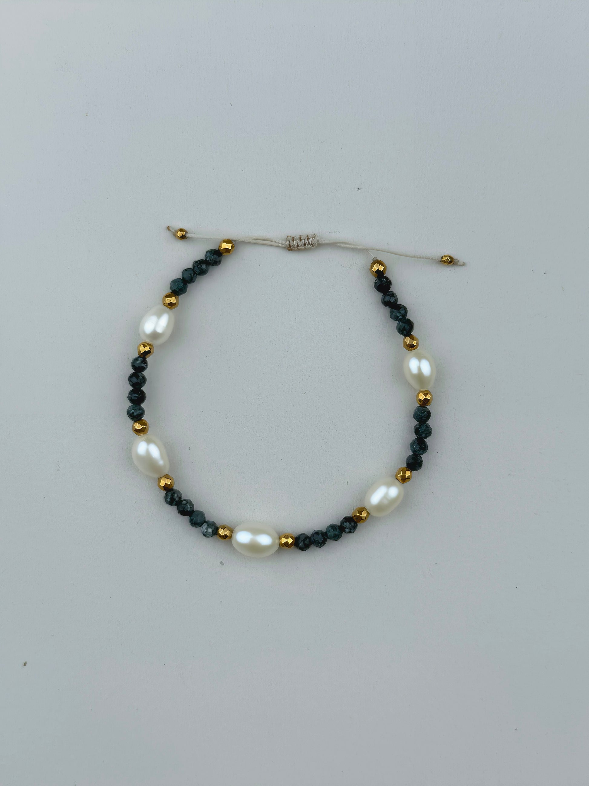 Połączenie jaspisu, naturalnej perły i złotego hematytu tworzy zrównoważoną, ziemistą kompozycję o głębokim, naturalnym charakterze. To biżuteria dla kobiet ceniących harmonię i spokój.