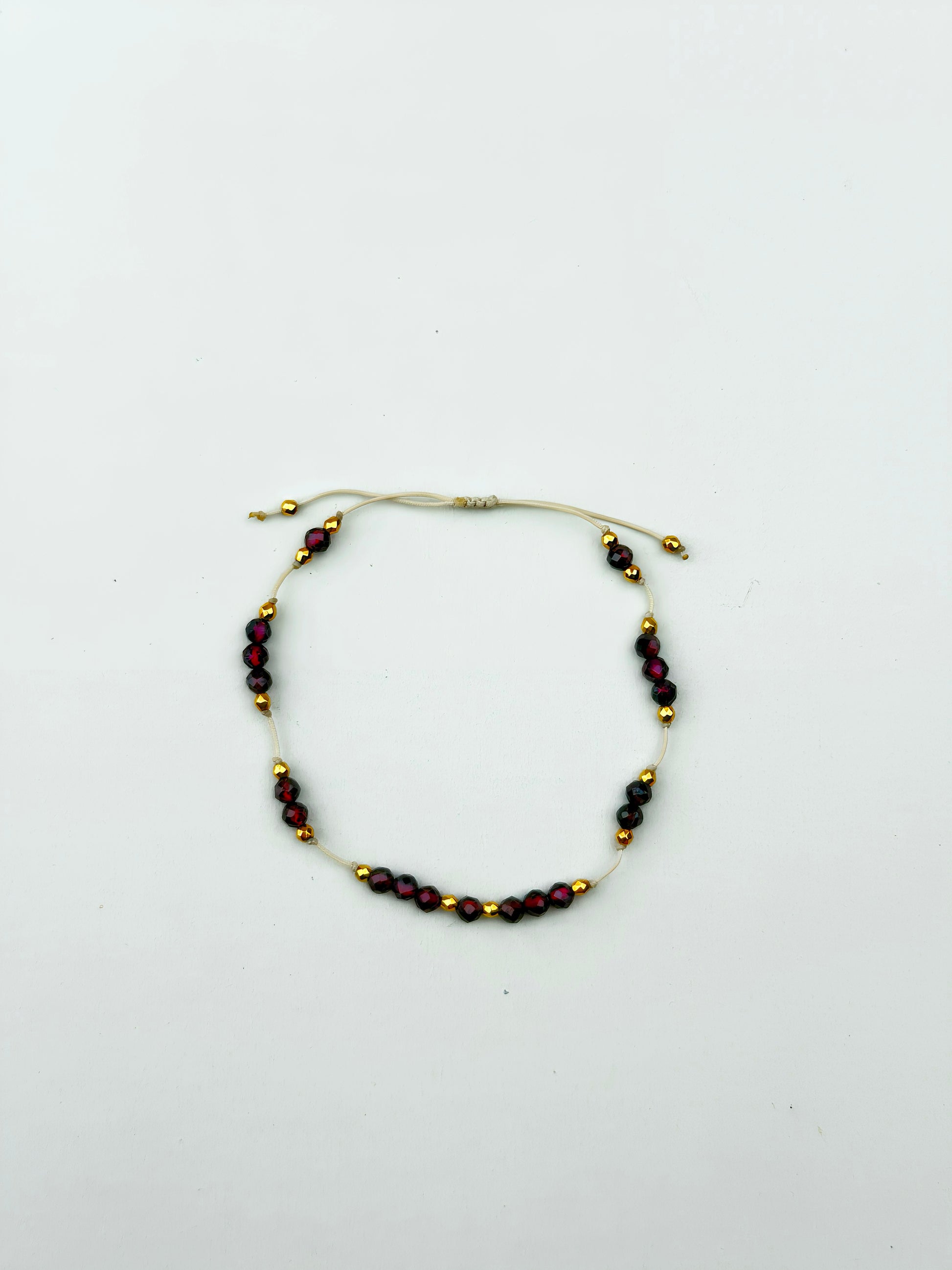 SELENE – Granat to ręcznie tworzona bransoletka z naturalnego granatu i złotego hematytu, stworzona z myślą o kobiecej sile i elegancji.